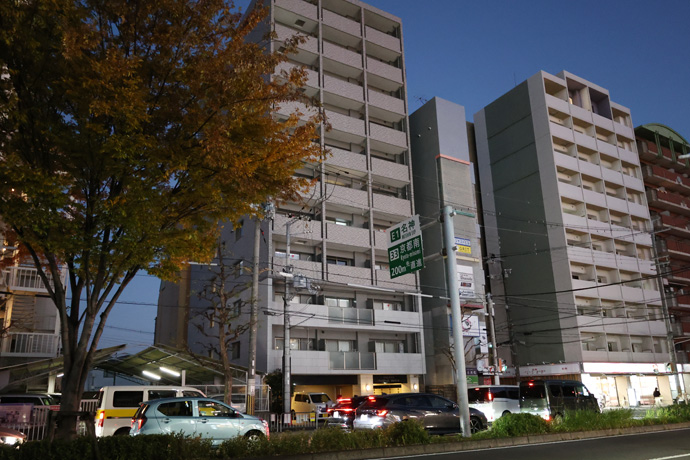「エスリード西大路駅前」 築2008年、11階建、40戸、1DKのマンションで、管理人 巡回、タイル貼り、ごみ出し24時間OK、オートロック、防犯カメラ、エレベーター、バイク置き場、駐輪場、宅配ボックスありです。