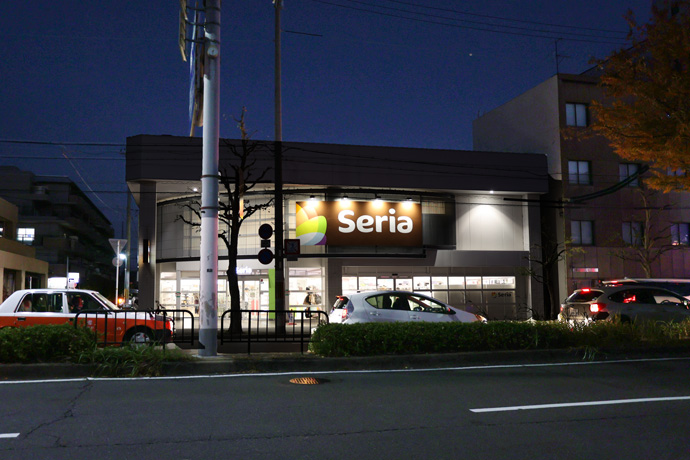 「Seria 西大路店」 Seriaは1987年に創業した100円ショップで、全国に直営2,037店舗、FC35店舗、京都府に35店舗を展開しています。ちなみに社名の「Seria」はイタリア語で「まじめな」という意味があるそうです。