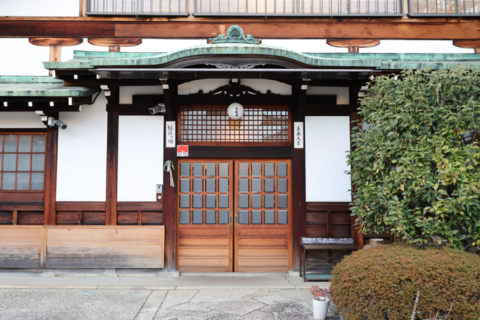 禅宗では、実際に寺院を創始した僧侶が尊敬する師を(形式上の)開山とする場合があり、勧請開山というそうです。当初は慈眼庵とよばれ、西陣地区には慈眼庵町の地名が現在も残っています。「庫裏」