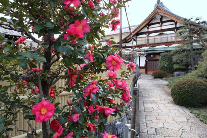 向かいの「五劫院(ごこういん)」は、山号を摂取山という百万遍知恩寺の浄土宗鎮西派に属する尼寺です。江戸時代中期の宝暦年間(1751-64)に開創されました。(正月飾りがなく、掲示板や看板に「山内往生人有」と書いてあり喪中のようです。)