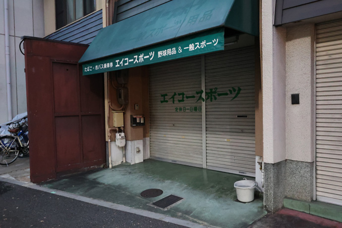 ところで、この辺りは京都市下京区七条御所ノ内南町で、近くに同北町・中町・西町・本町もあります。平安京の八条から九条に位置しますが、かっては西七条村に隣接した御所ノ内村があった場所です。下は野球と一般スポーツ用品の「エイコースポーツ」。