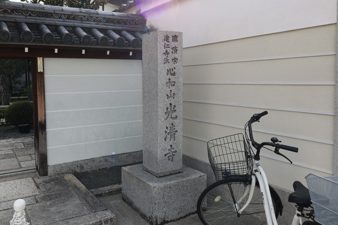 光清寺は「乾三十三所第六番」の札所でした。乾(戌亥)は北西の方角を意味し、この霊場は洛中の北西部(現在の上京区西部と北区南西部)にあり、智恵光院や椿寺、だるま寺も入っていました。最後の写真は中門からの心和の庭。