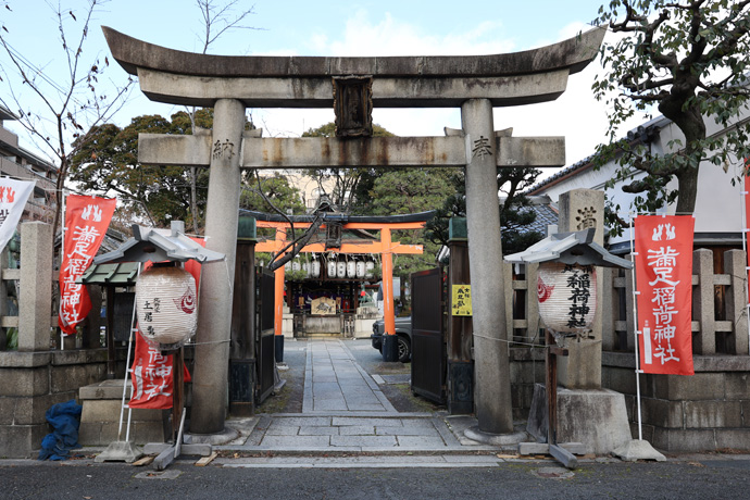 平安神宮に初詣にでかけたとき、東山仁王門のバス停から神宮道に向かって歩きました。最初にバス停の近くにある「満足稲荷神社」に立ち寄ります。TOPは東大路通から東に入る脇道にある「一の鳥居」。