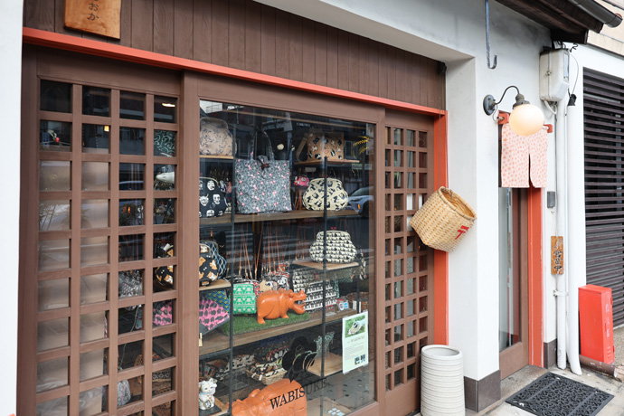 雑貨屋の「WABISUKE」、右の籠(かご)は郵便受けのようです。