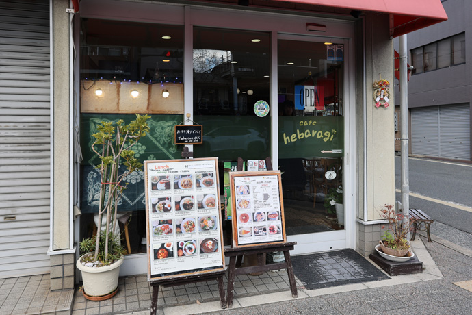 カフェ・喫茶の「ヘバラギ」 右の壁に小さなしめ飾りがあります。輪の形になっているのはリース型といい、京都ではよく見かけます。