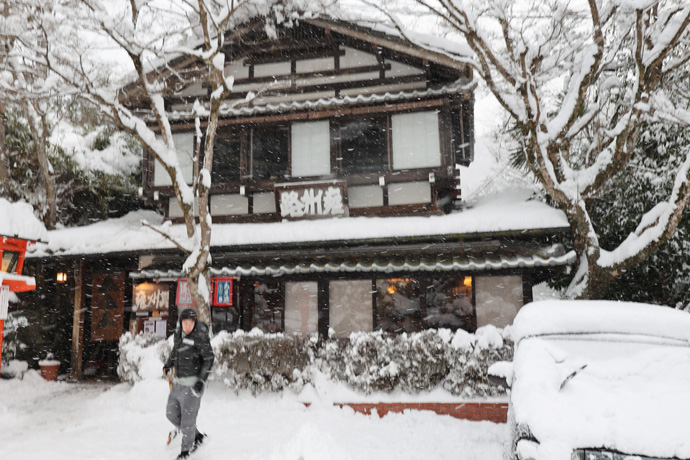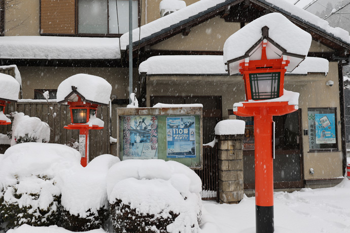 昨日の記事の続きで、本格的な雪景色を見たくなって叡山電車で鞍馬駅まで来ました。駅前の「大天狗」は、平安建都1200年を記念して鞍馬の自治会が制作したものです。2017年の大雪で鼻が折れて新しい大天狗になっています。
