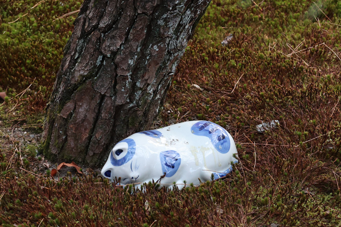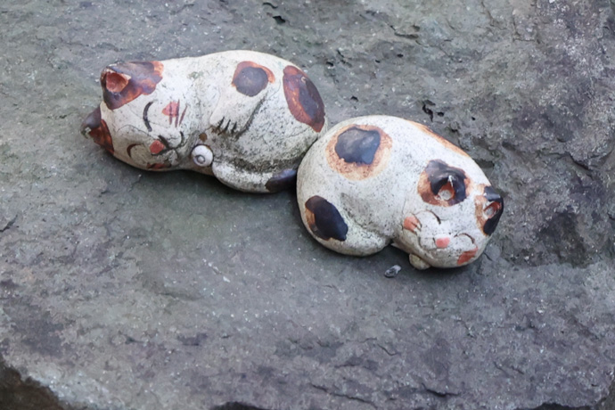 役の優婆塞(うばそく)、役の小角(しょうかく・おづの)とも呼ばれます。また、遠忌(没後)1100年を迎えるにあたって、光格天皇から神変大菩薩の諡(神号)が贈られました。小さな置物があちこちにあって参拝者を楽しませてくれます。