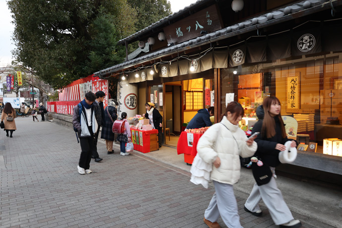 昨日の記事の聖護院門跡を後に、熊野神社に来ました。訪れたのは節分祭の2月2日ですが、既に日にちがたっていますので、このあたりの聖護院に何軒もお店がある「八ッ橋」の実情もあわせて紹介します。