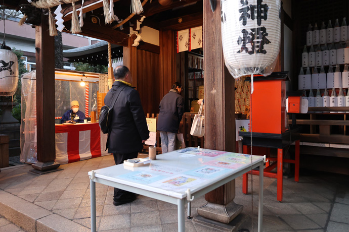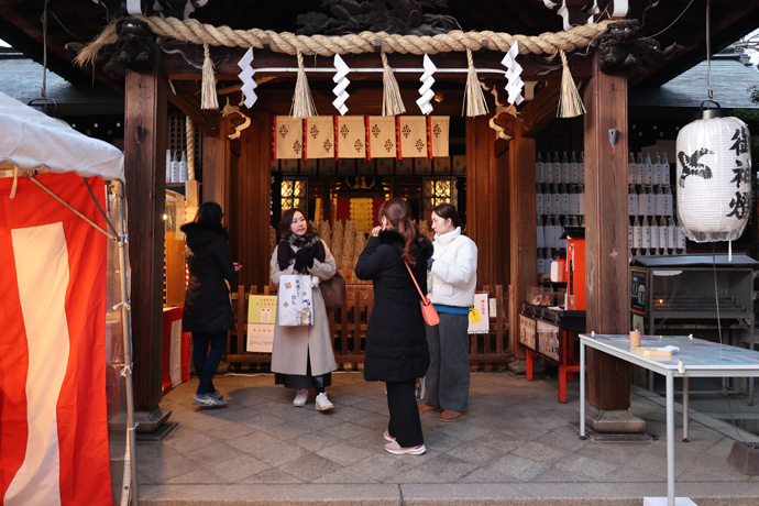 熊野三山の祭神を祀る本殿には、代表的な京銘菓や漬物屋さんからの奉納品が並んでいます。